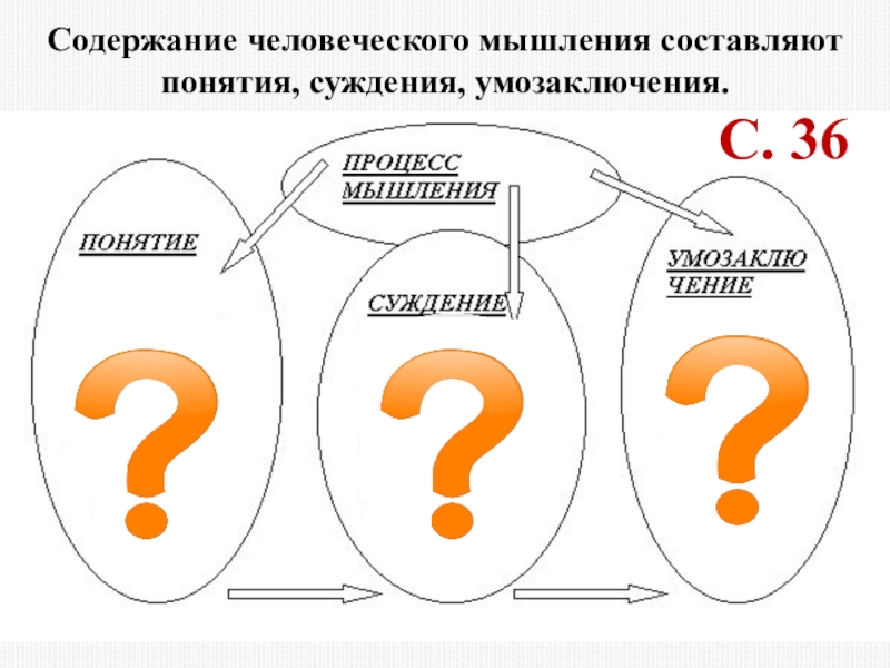Слайд 10Содержание человеческого мышления составляют понятия, суждения, умозаключения.