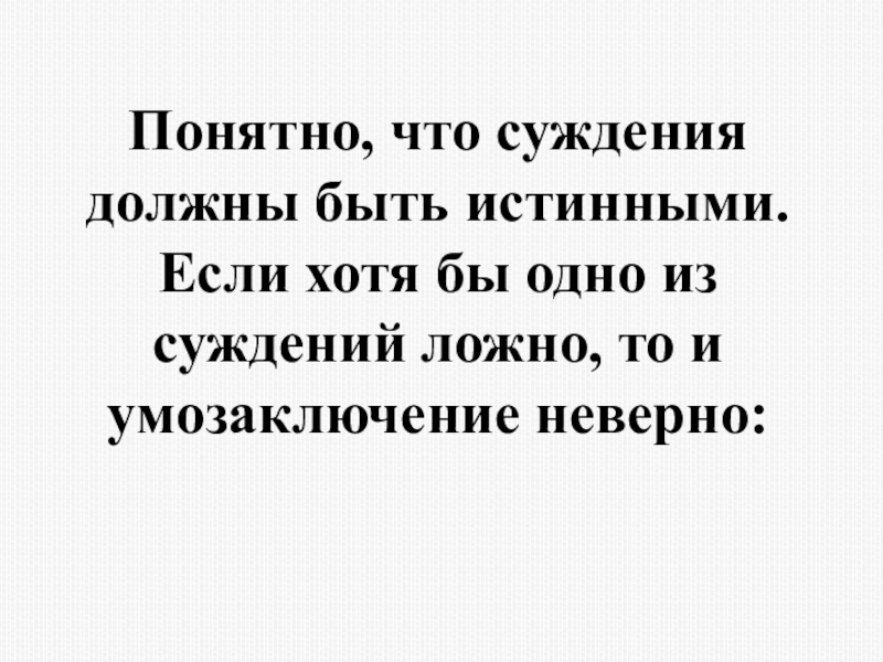 Слайд 13Понятно, что суждения должны быть истинными. Если хотя бы одно из