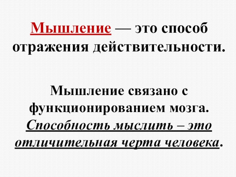Слайд 9Мышление — это способ отражения действительности.