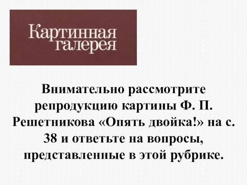Слайд 34Внимательно рассмотрите репродукцию картины Ф. П. Решетникова «Опять двойка!» на с.