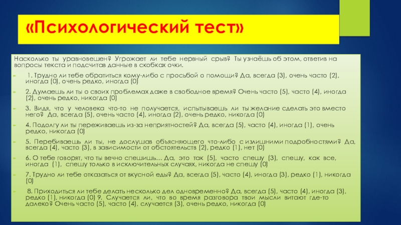 Насколько ты уравновешен? Угрожает ли тебе нервный срыв? Ты