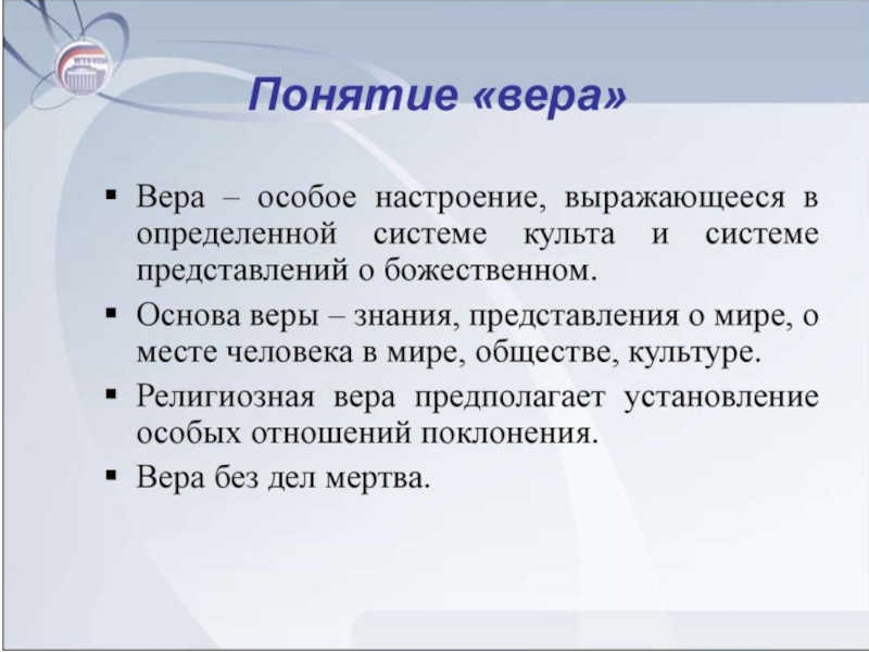 Слайд 3 1. Верны ли следующие суждения о вере?