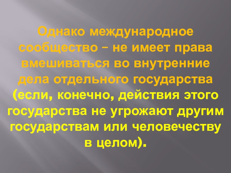 Слайд 29Однако международное сообщество – не имеет права вмешиваться во внутренние дела
