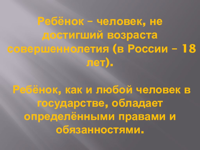 Слайд 42Ребёнок – человек, не достигший возраста совершеннолетия (в России – 18