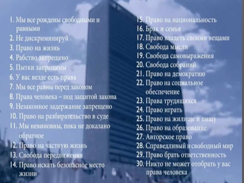 Слайд 17Права людей на международном уровне были закреплены не очень давно по