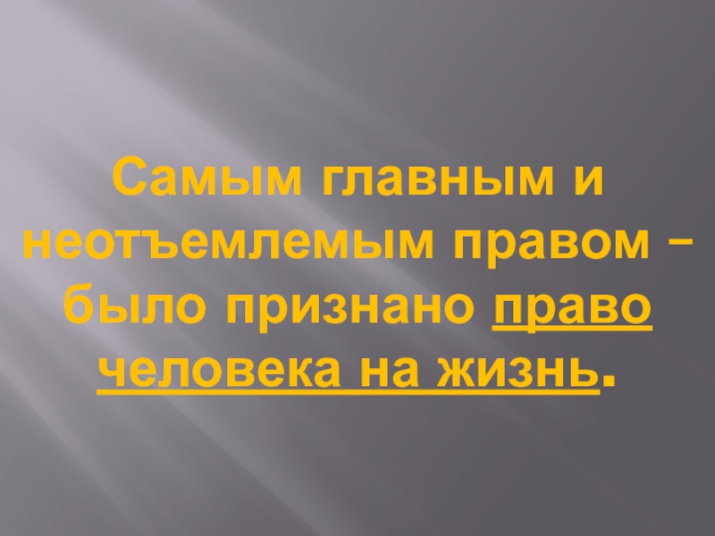 Самым главным и неотъемлемым правом – было признано право человека на жизнь.