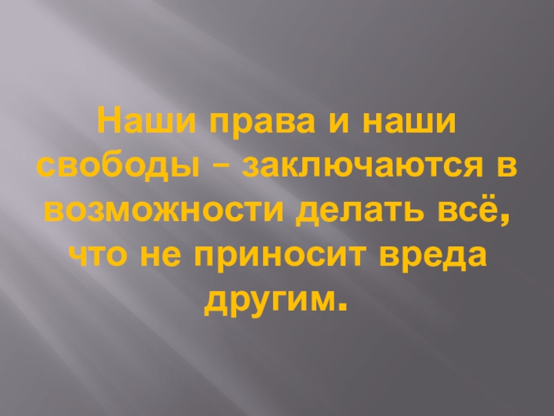 Наши права и наши свободы – заключаются в возможности делать всё, что не приносит вреда другим.