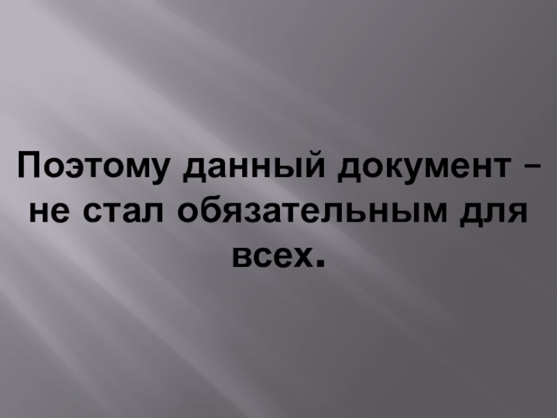 Слайд 31Поэтому данный документ – не стал обязательным для всех.