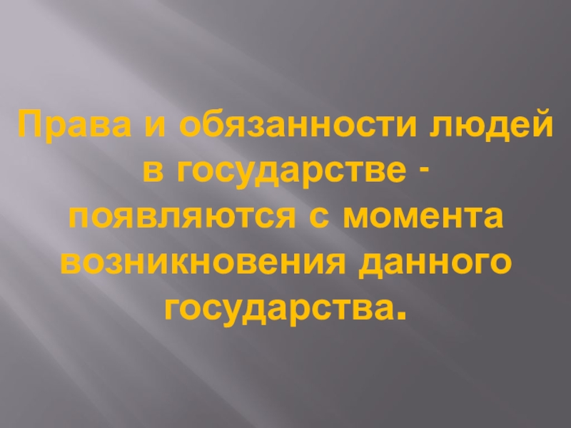 Слайд 13Права и обязанности людей в государстве - появляются с момента возникновения
