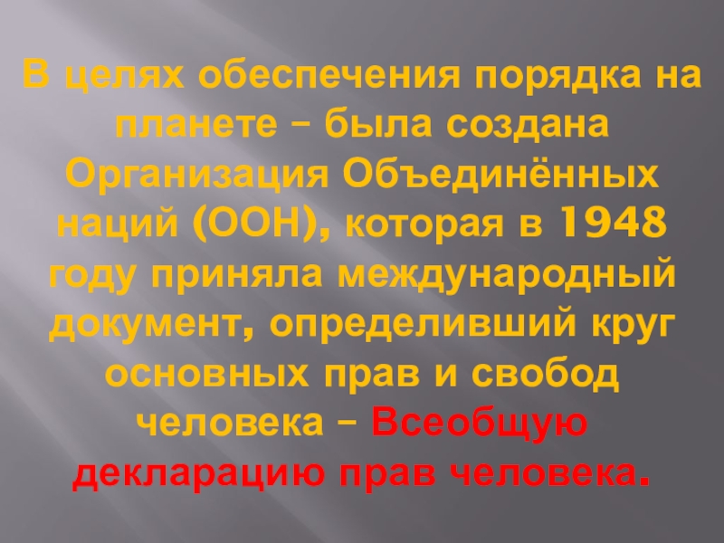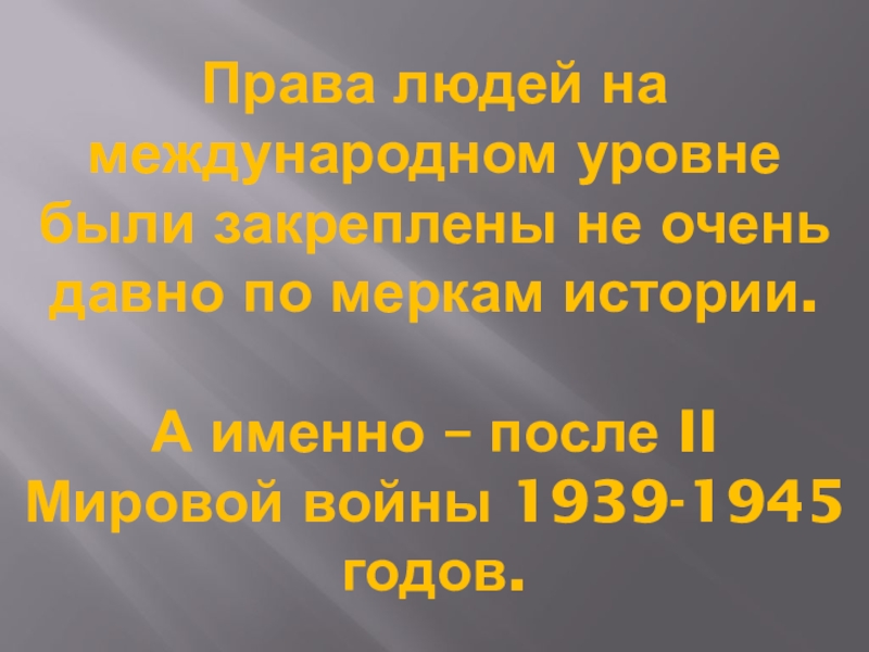 Права людей на международном уровне были закреплены не очень давно по меркам истории.  А именно –