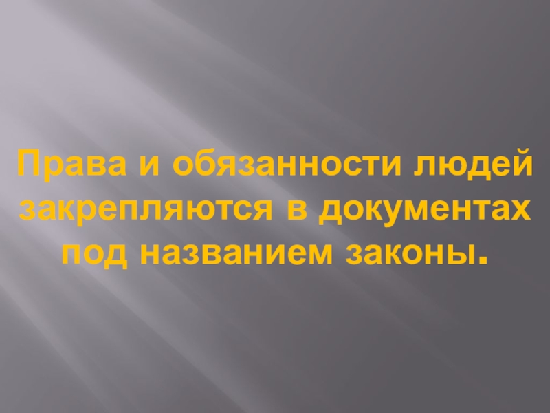 Слайд 7Права и обязанности людей закрепляются в документах под названием законы.