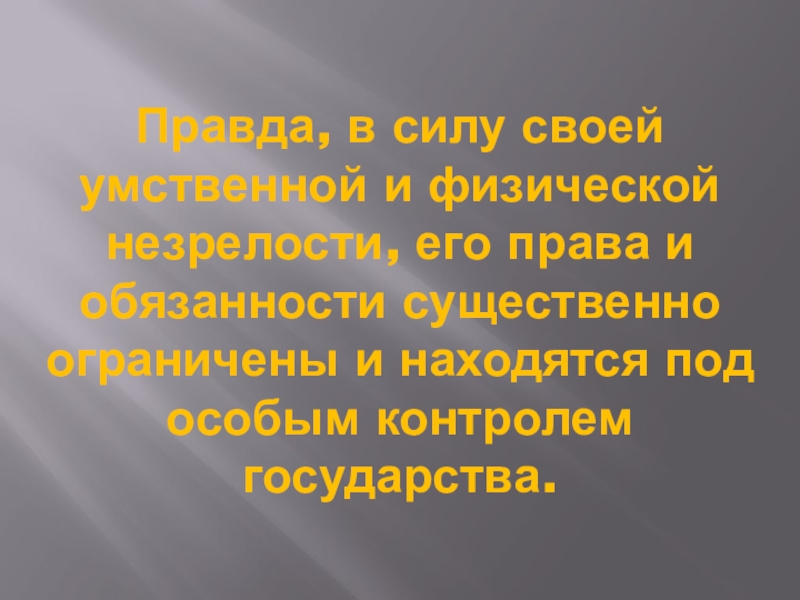 Слайд 43Правда, в силу своей умственной и физической незрелости, его права и
