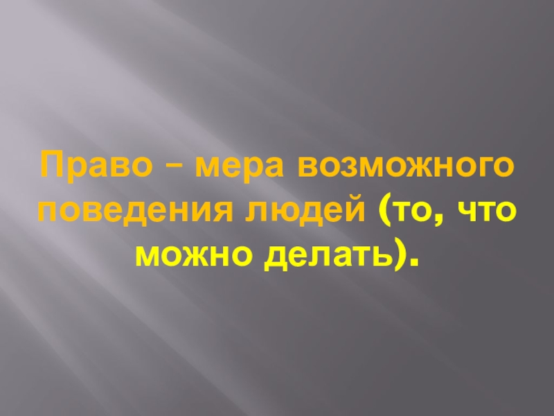 Слайд 3Право – мера возможного поведения людей (то, что можно делать).