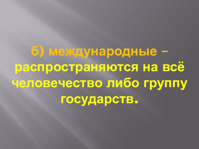 Слайд 10б) международные – распространяются на всё человечество либо группу государств.