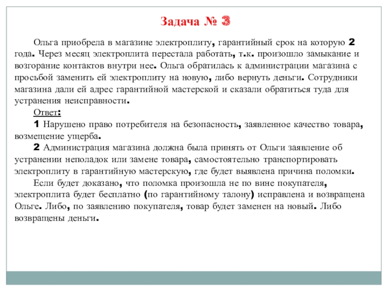 Ольга приобрела в магазине электроплиту, гарантийный срок на которую