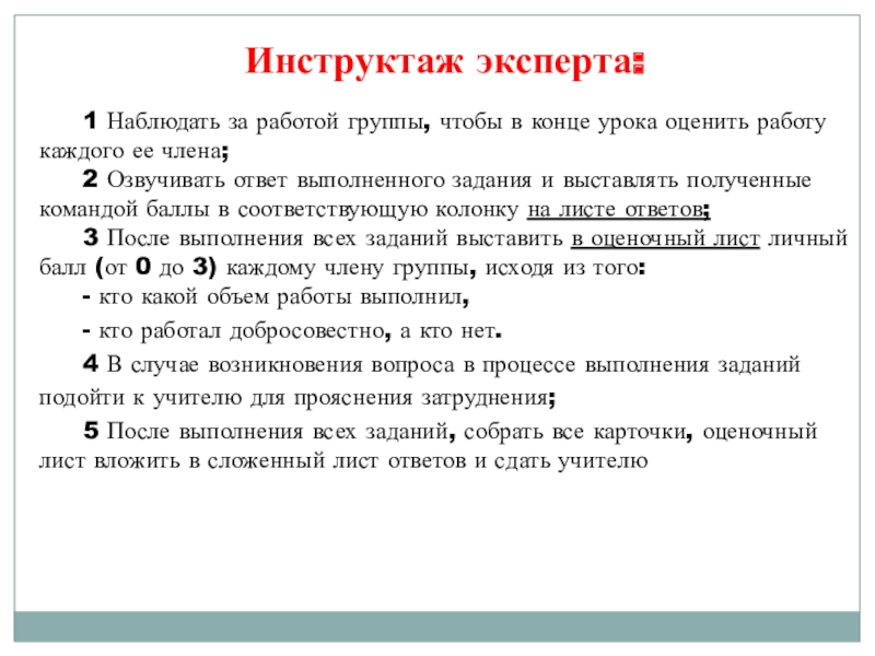 3 После выполнения всех заданий выставить в оценочный лист личный балл (от 0 до 3) каждому члену группы, исходя из того: