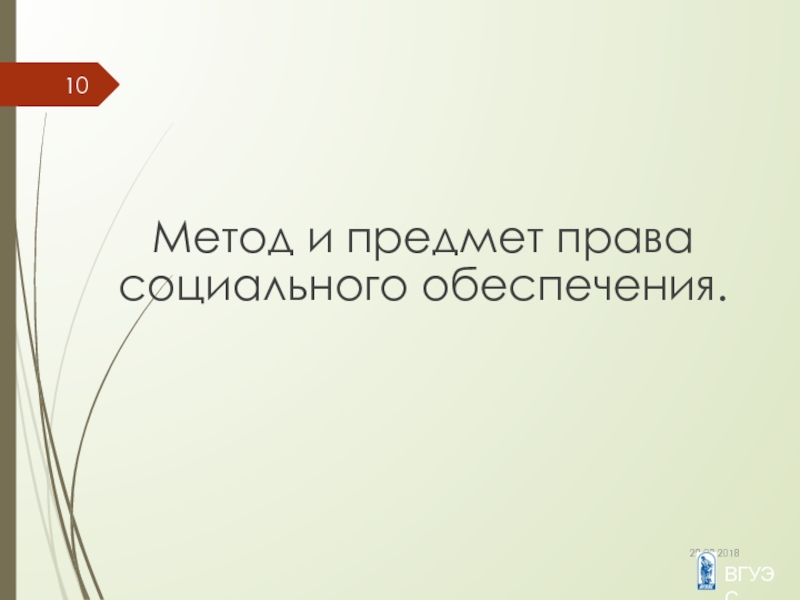 Слайд 10Метод и предмет права социального обеспечения.