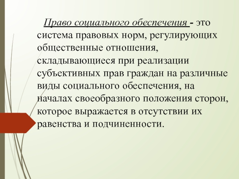 Слайд 4Право социального обеспечения - это система правовых норм, регулирующих общественные отношения,
