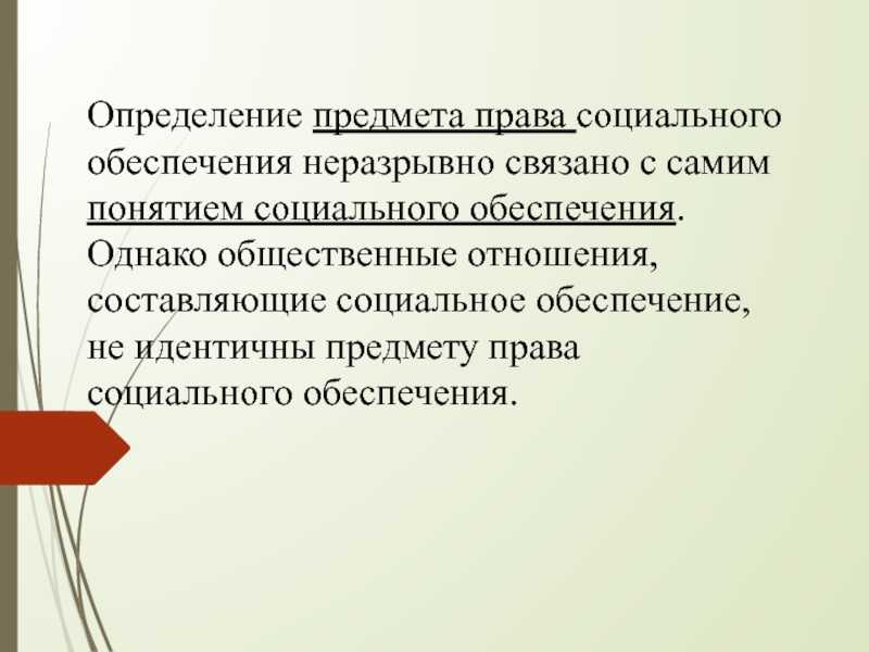 Слайд 11Определение предмета права социального обеспечения неразрывно связано с самим понятием социального