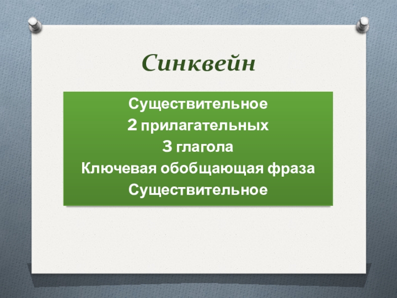 Существительное2 прилагательных3 глаголаКлючевая обобщающая фразаСуществительноеСинквейн