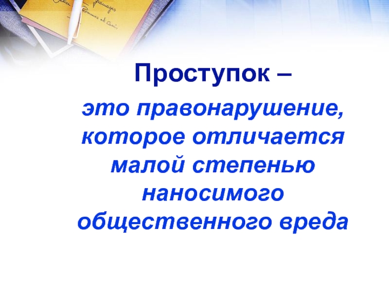 Проступок – это правонарушение, которое отличается малой степенью наносимого общественного вреда