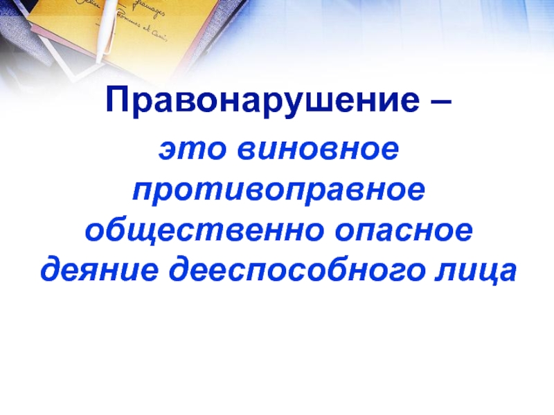Правонарушение – это виновное противоправное общественно опасное деяние дееспособного лица