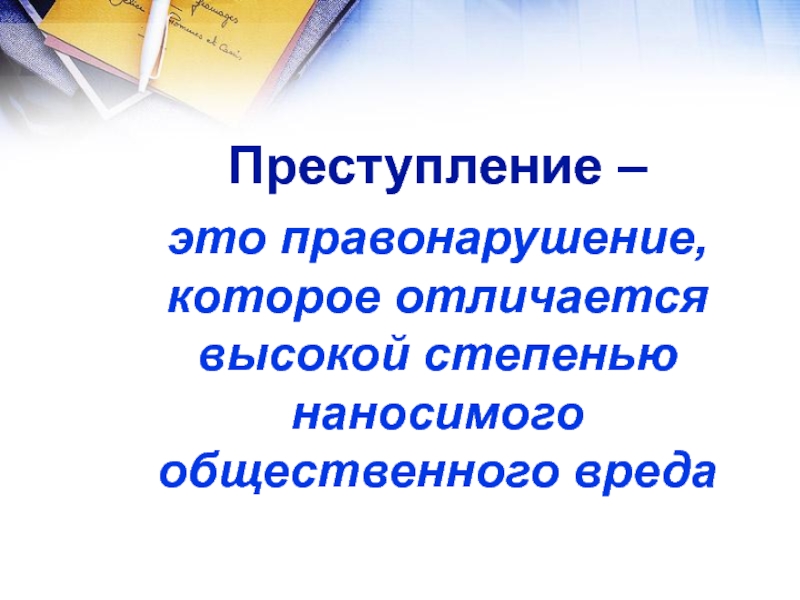 Преступление – это правонарушение, которое отличается высокой степенью наносимого общественного вреда