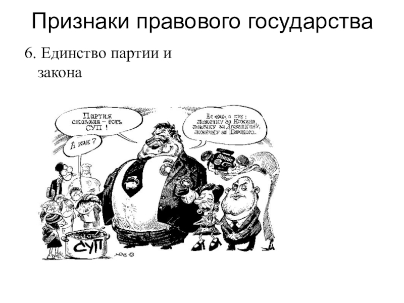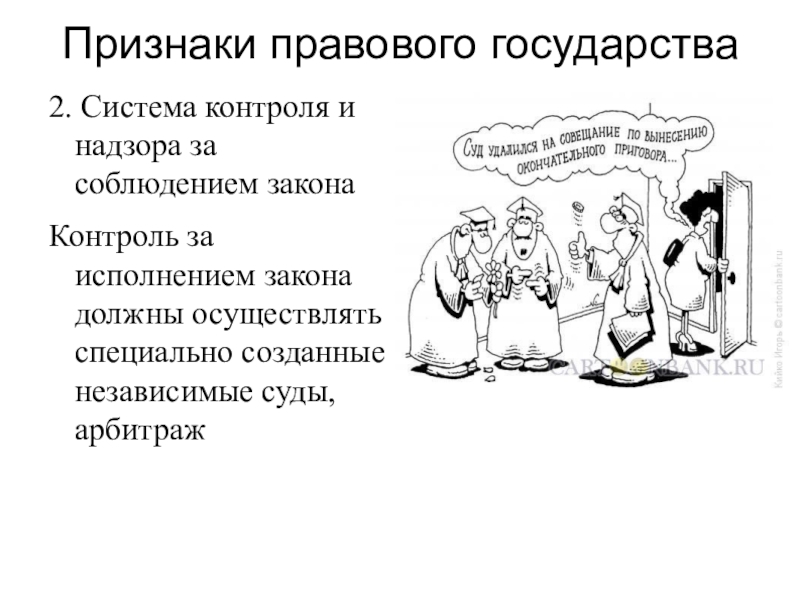 Признаки правового государства2. Система контроля и надзора за соблюдением законаКонтроль за исполнением закона должны осуществлять специально созданные