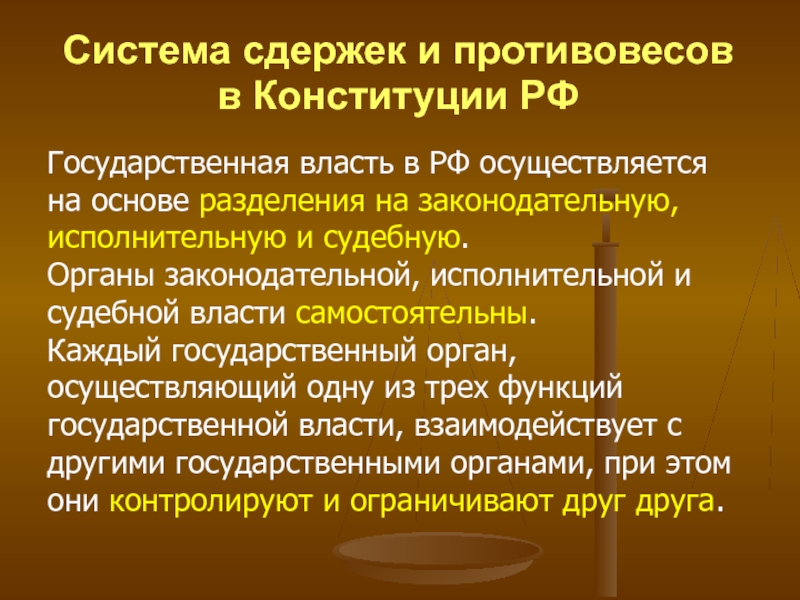 Слайд 14Система сдержек и противовесов в Конституции РФ