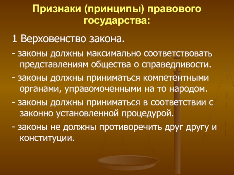 представления должны составлять основу конституции. Государство должно само подчиняться соответствующим юридическим законам и не должно подстраивать их по свою политику.