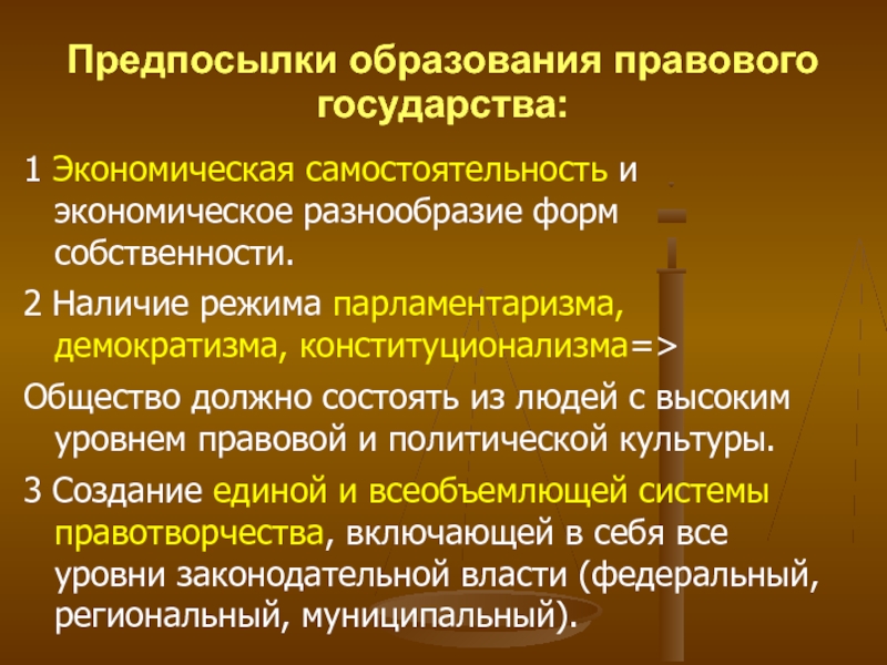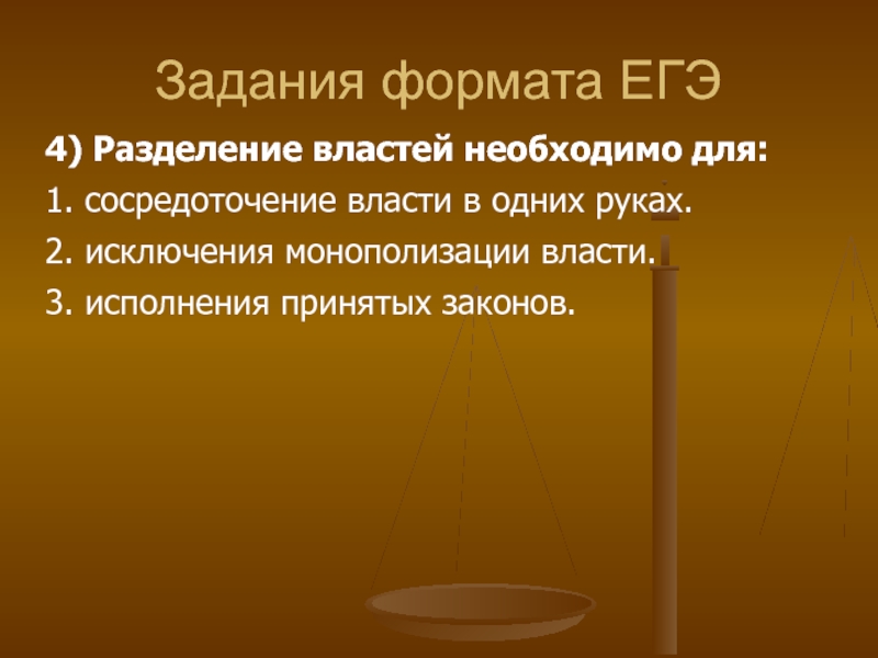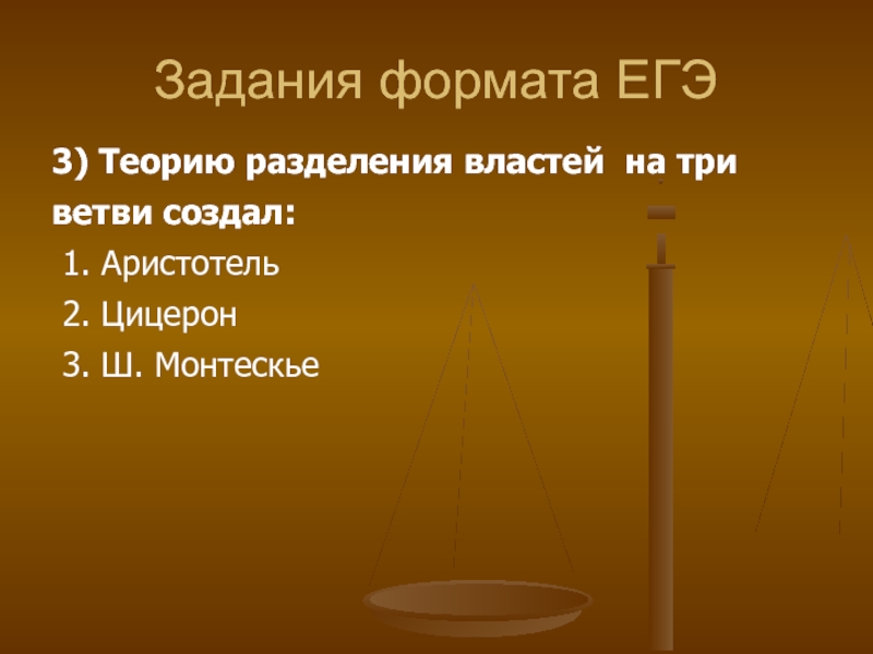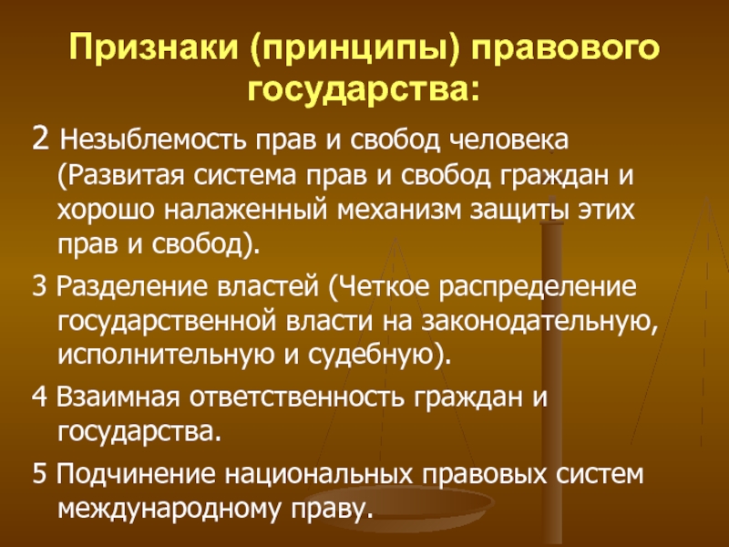 3 Разделение властей (Четкое распределение государственной власти на законодательную, исполнительную и судебную).