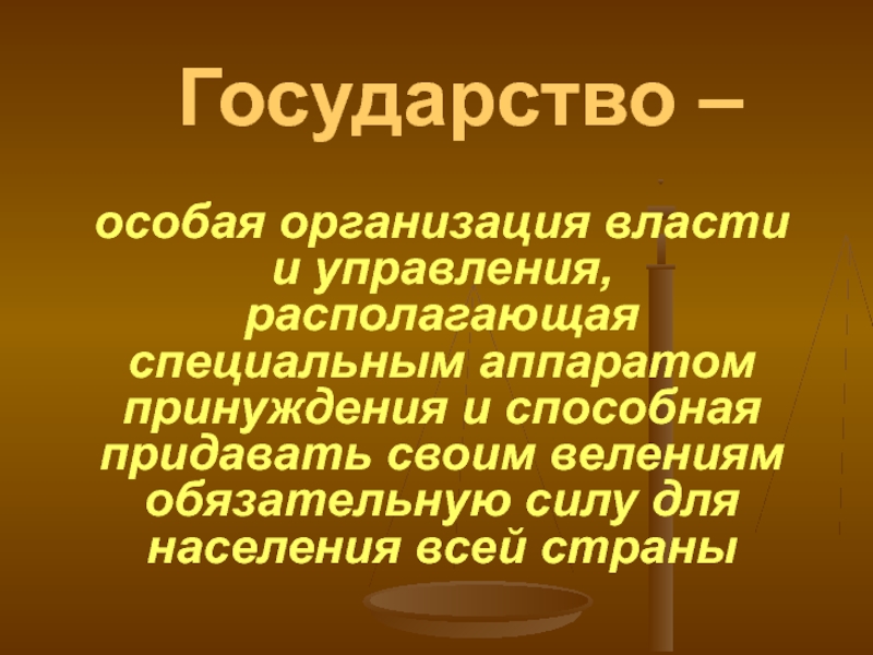 особая организация власти и управления, располагающая специальным аппаратом принуждения и