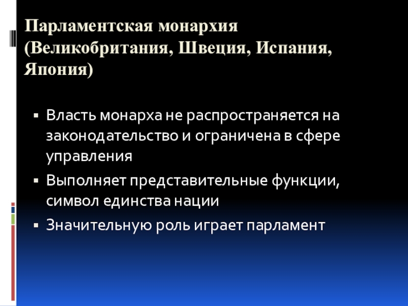 Слайд 13Парламентская монархия