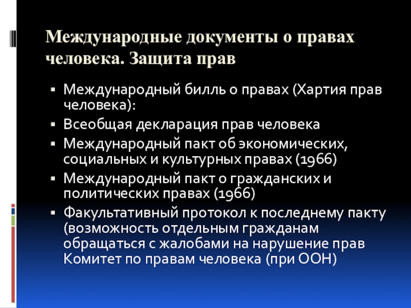 Слайд 14Международные документы о правах человека. Защита прав