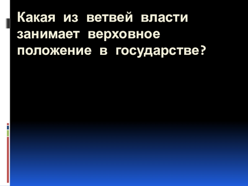 Слайд 8Какая из ветвей власти занимает верховное положение в государстве?