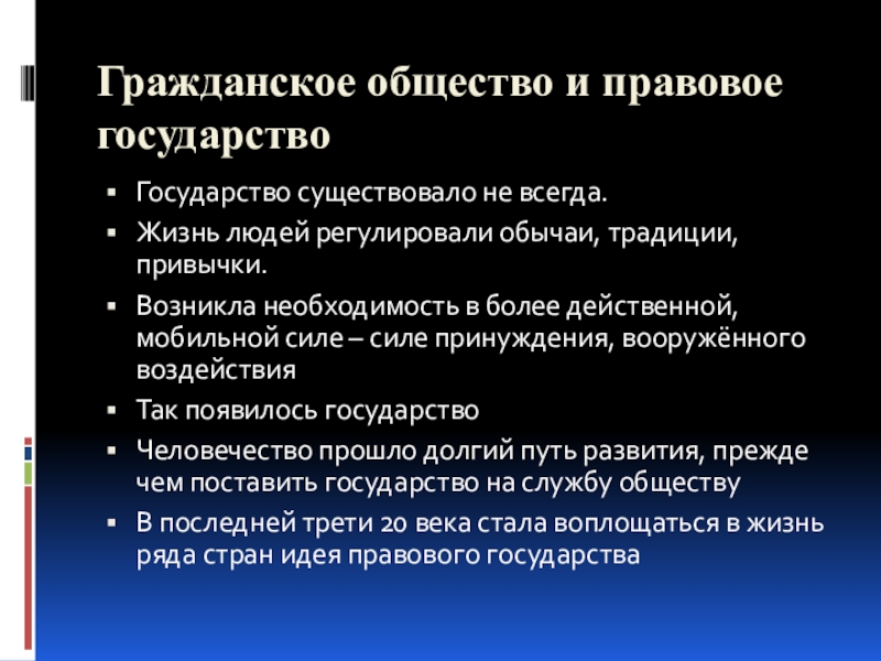 Слайд 3Гражданское общество и правовое государство