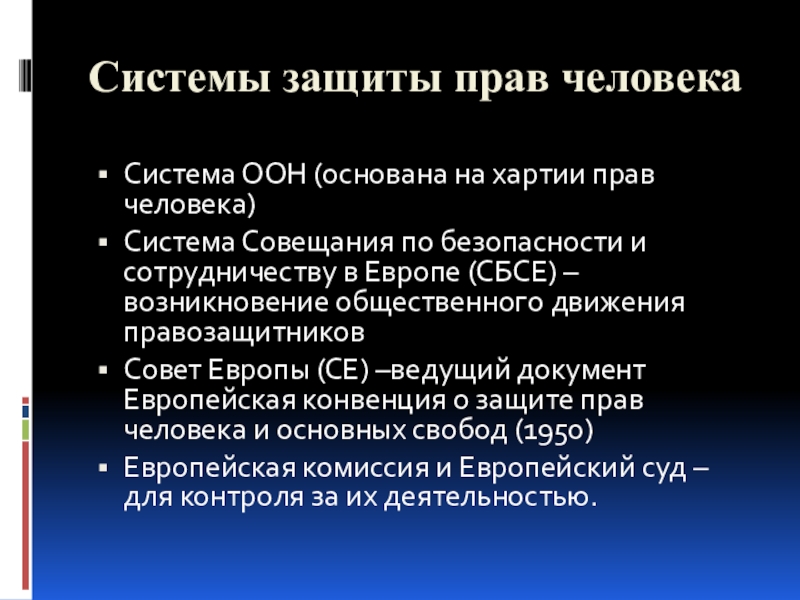 Слайд 15Системы защиты прав человека