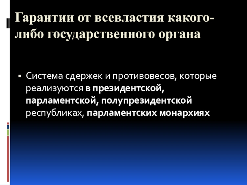 Слайд 9Гарантии от всевластия какого-либо государственного органа
