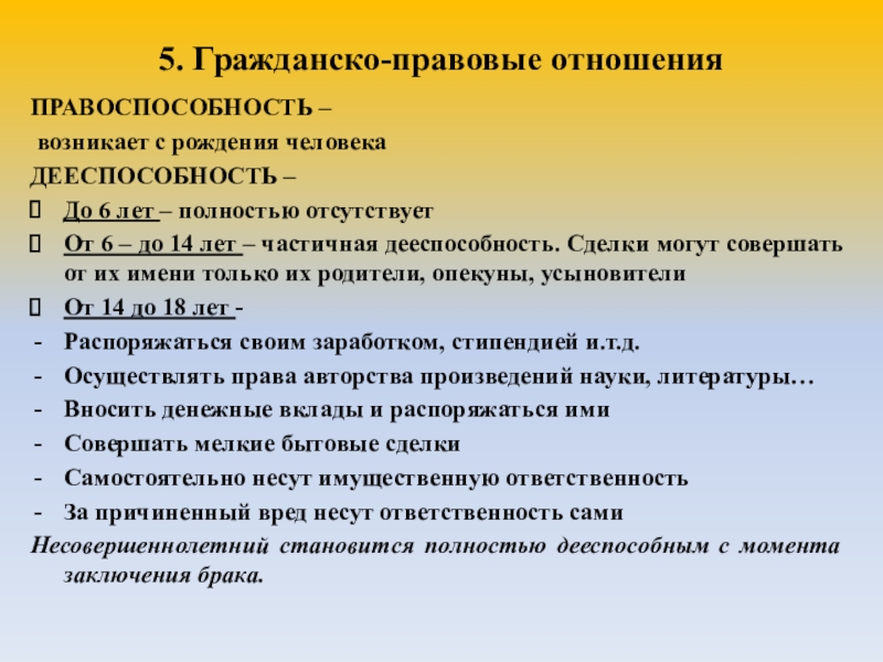 От 6 – до 14 лет – частичная дееспособность. Сделки могут совершать от их имени только их родители, опекуны, усыновители