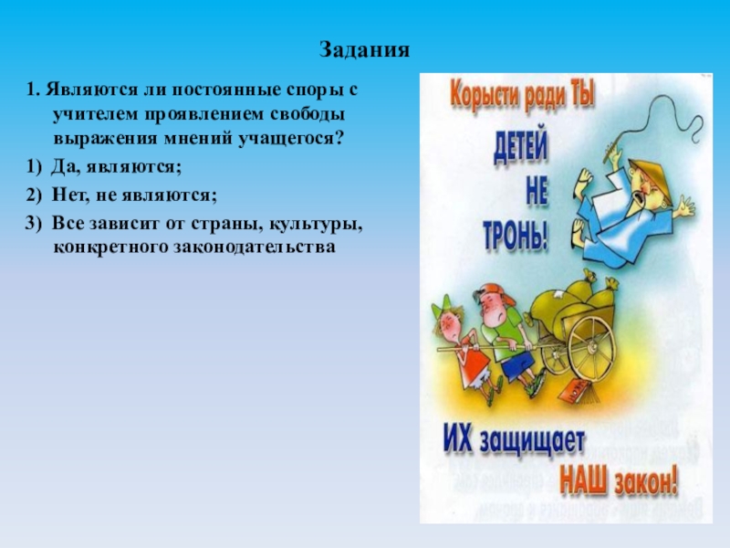 1. Являются ли постоянные споры с учителем проявлением свободы выражения мнений