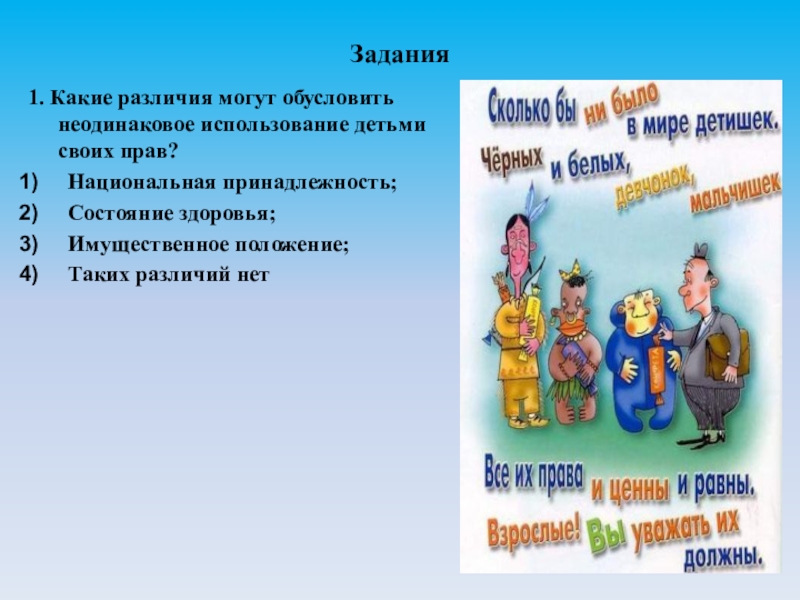 1. Какие различия могут обусловить неодинаковое использование детьми своих прав?