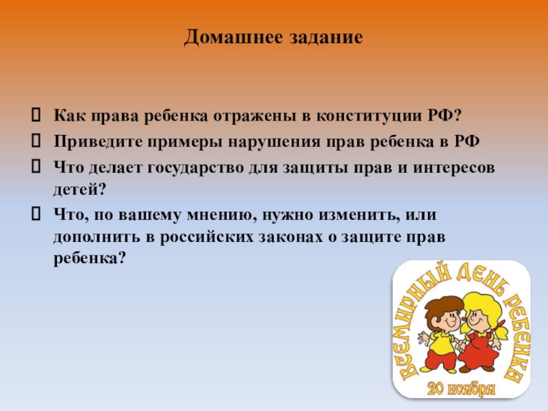 Что, по вашему мнению, нужно изменить, или дополнить в российских законах о защите прав ребенка?