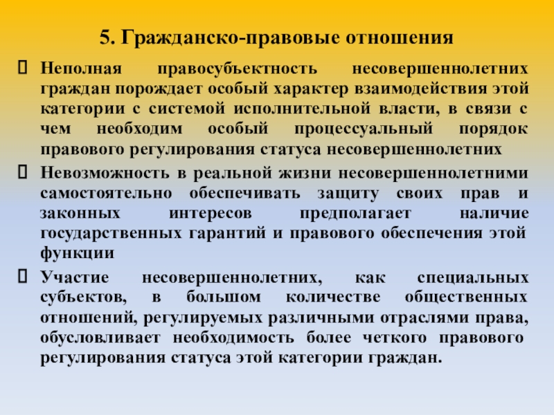 Неполная правосубъектность несовершеннолетних граждан порождает особый характер взаимодействия этой