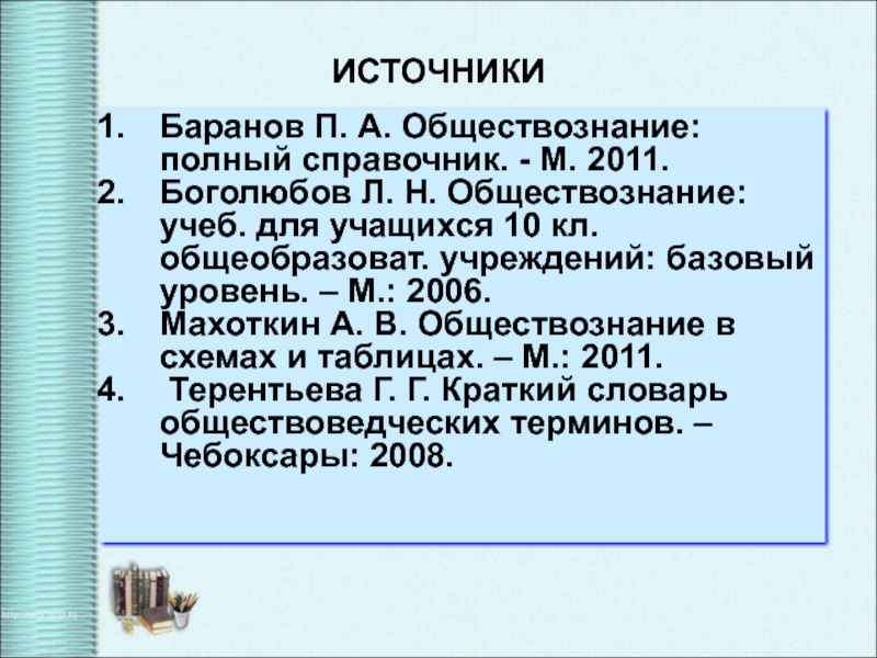 Это сайт презентаций, где можно хранить и обмениваться своими презентациями, докладами, проектами, шаблонами в формате PowerPoint с другими пользователями. Мы помогаем школьникам, студентам, учителям, преподавателям хранить и обмениваться учебными материалами.