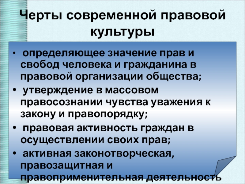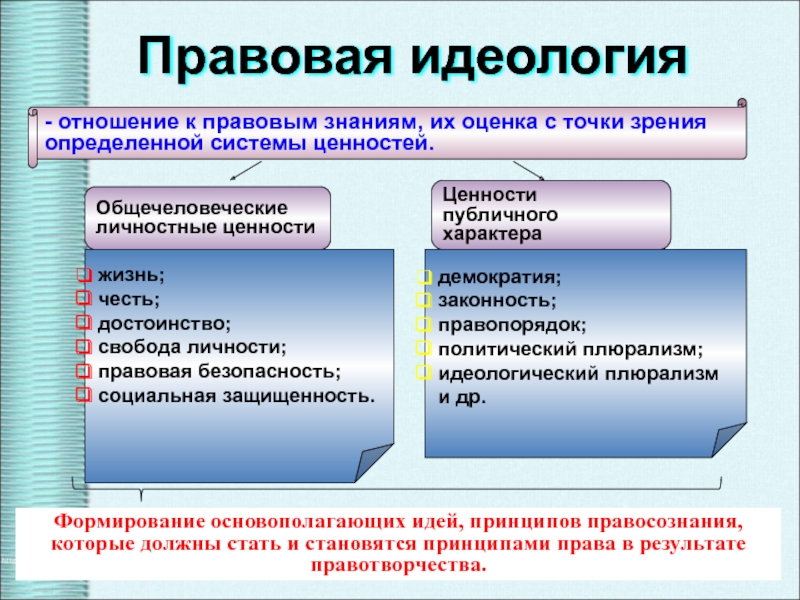 Формирование основополагающих идей, принципов правосознания, которые должны стать и становятся принципами права в результате правотворчества.