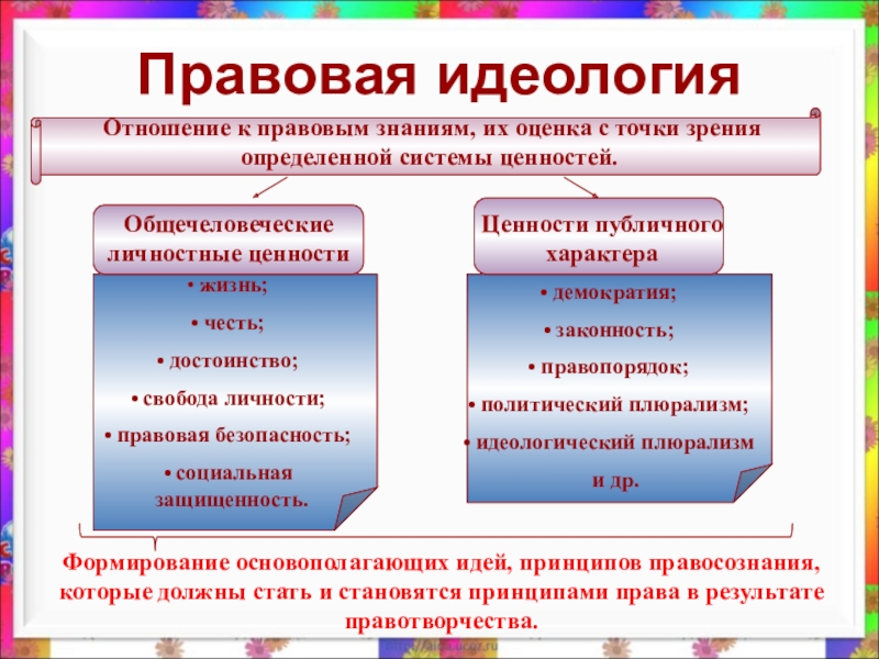 Формирование основополагающих идей, принципов правосознания, которые должны стать и становятся принципами права в результате правотворчества.