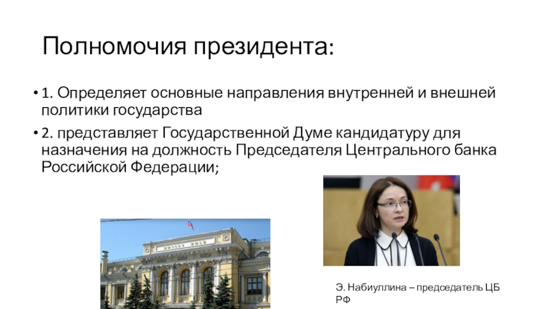 Э. Набиуллина – председатель ЦБ РФ