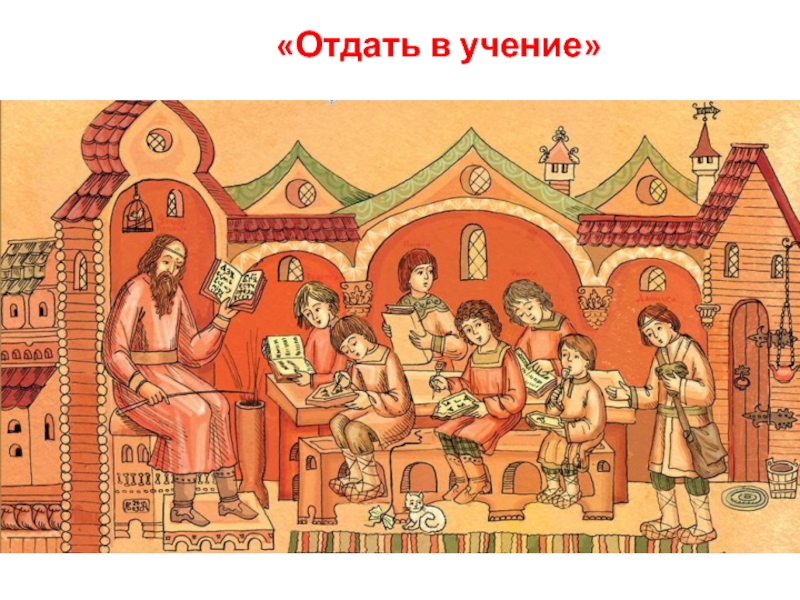 Слайд 6Б.М.Кустодиев «Земская школа в Московской Руси»