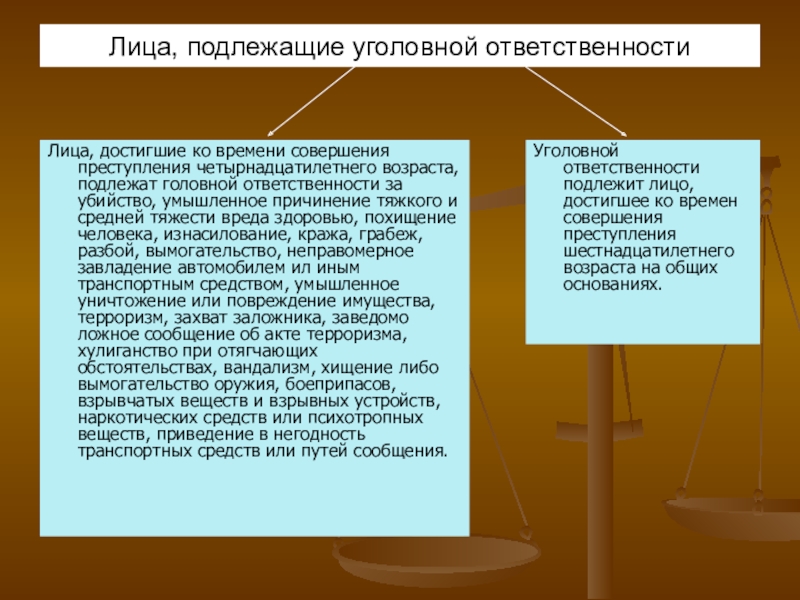 Уголовной ответственности подлежит лицо, достигшее ко времен совершения преступления шестнадцатилетнего возраста на общих основаниях.