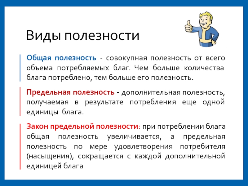 Только то благо, которое обладает для потребителя полезностью, может удовлетворить его потребности.